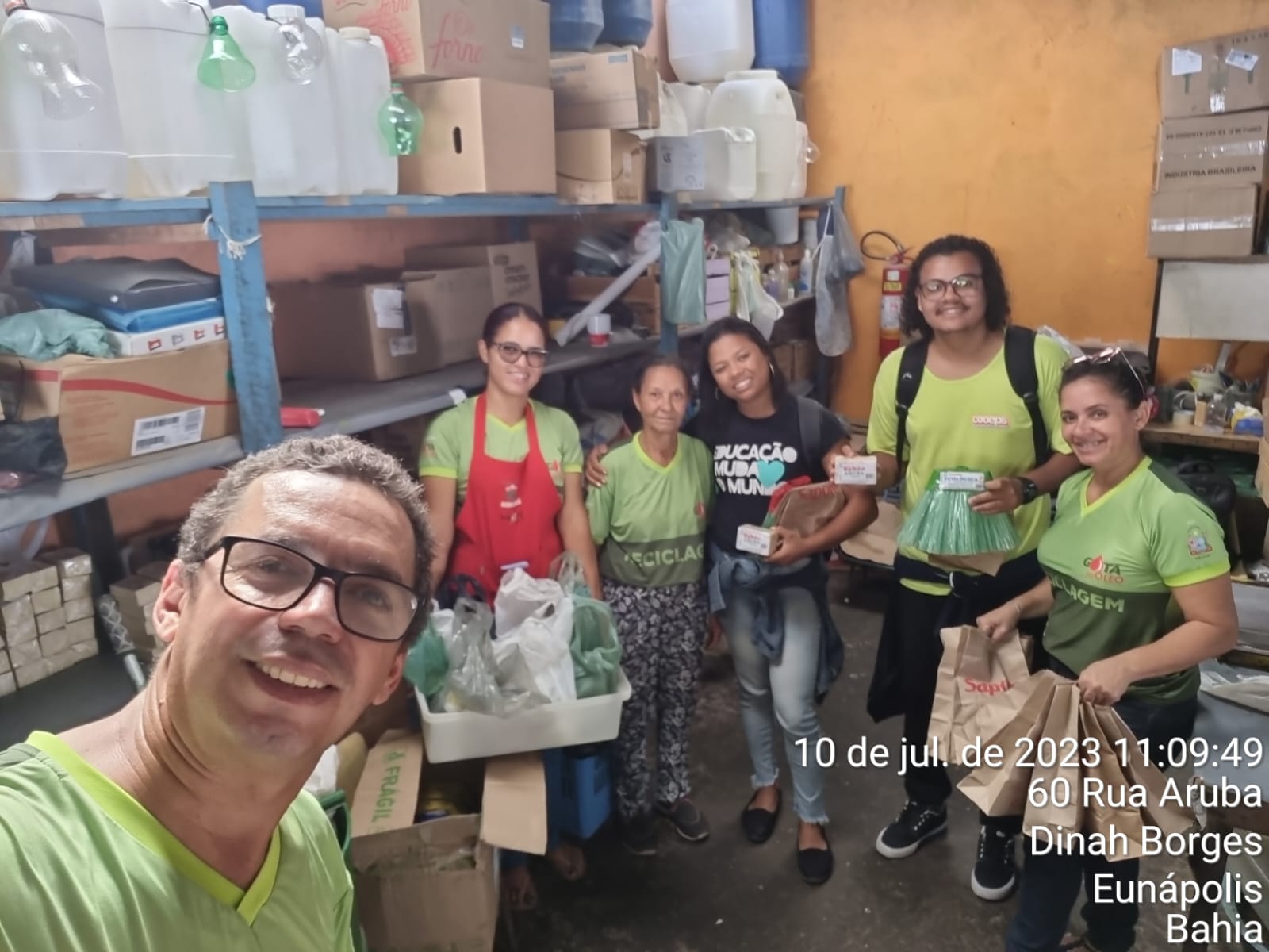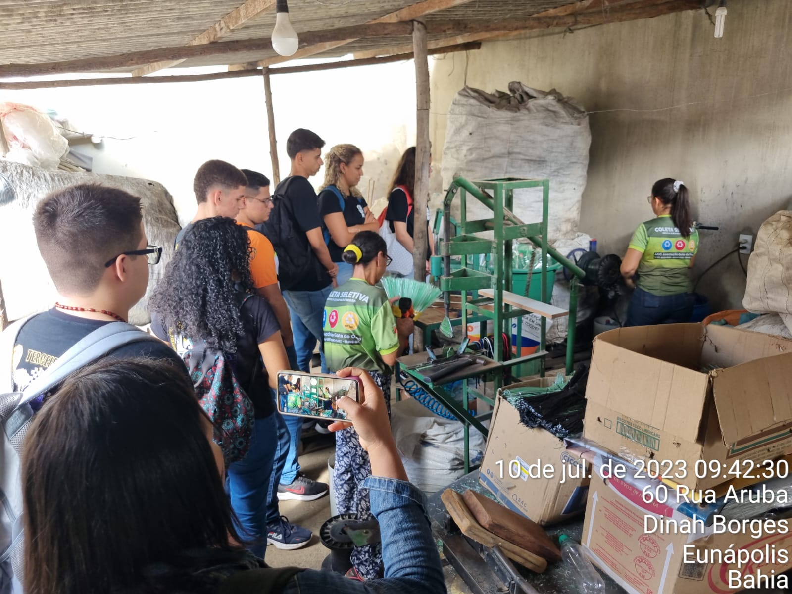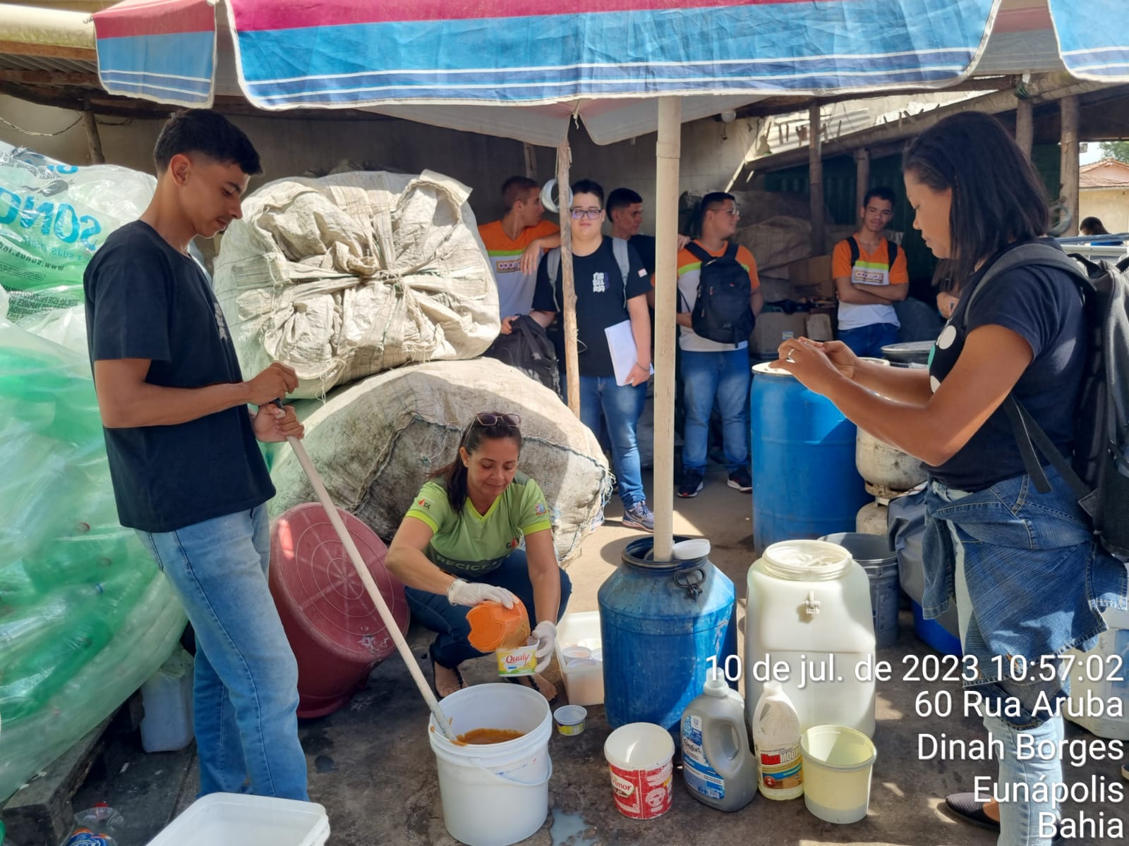 Durante a visita técnica os alunos/as da COOEPS viram como é realizada a triagem dos materiais recicláveis, o processo de fabricação das vassouras ecológica feitas de garrafas pet e participaram de uma Oficina de Sabão Ecológico feito do óleo de cozinha usado.