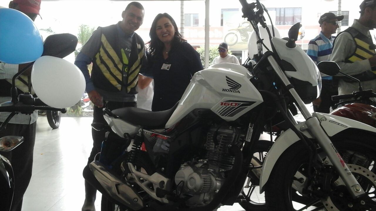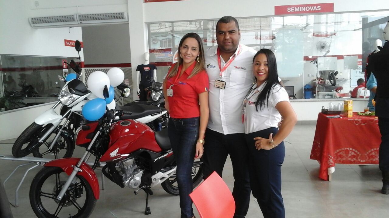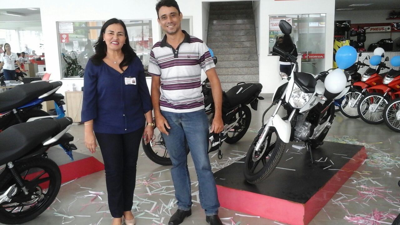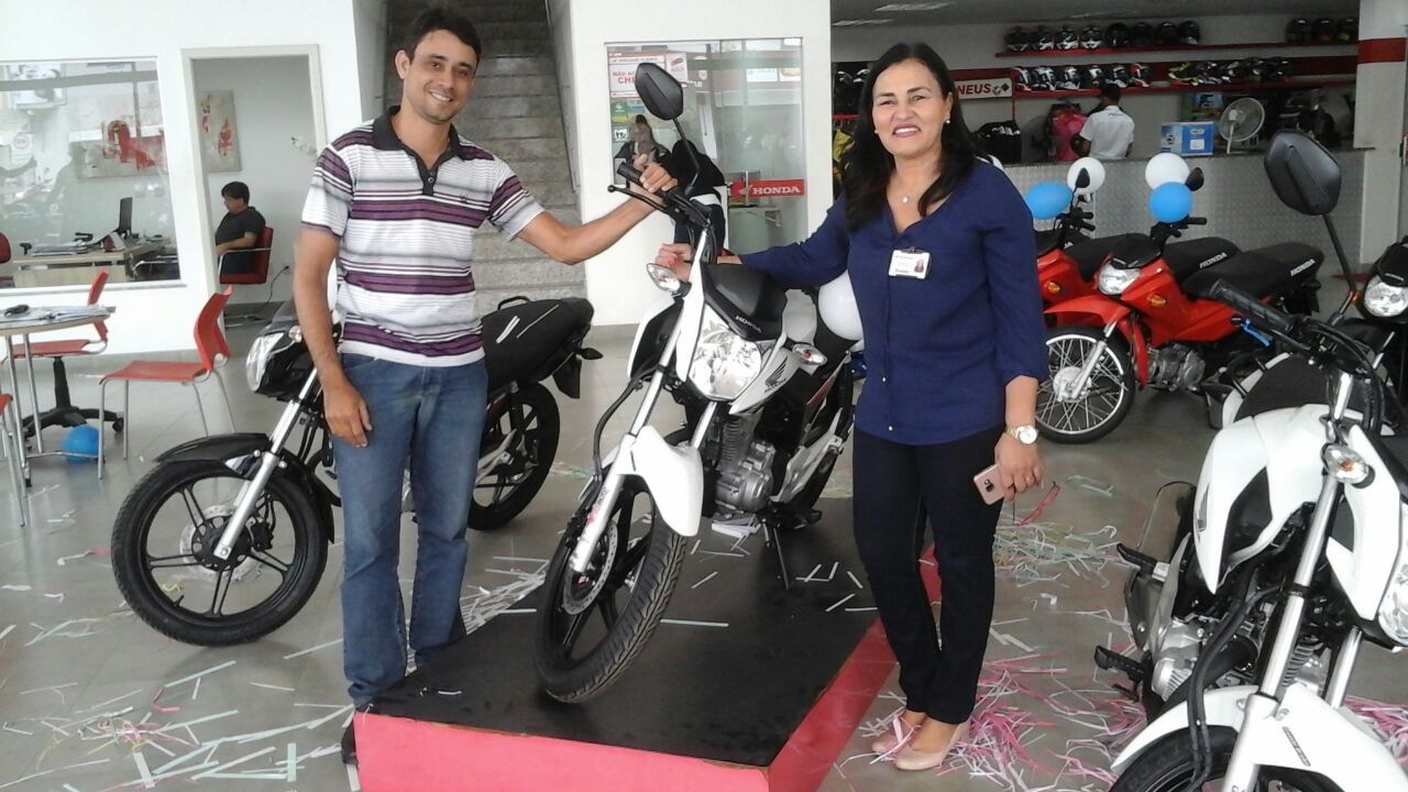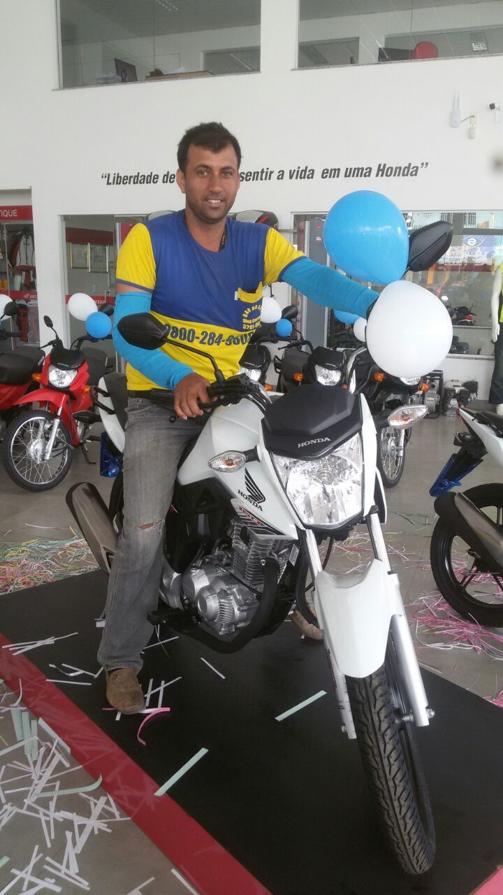 Maxsuel Santos, presidente dos mototaxistas de Eunápolis aprovou a nova moto e parabenizou Eusângela Rita, gerente da Brasmoto, pela parceria e desconto na compra das motos.