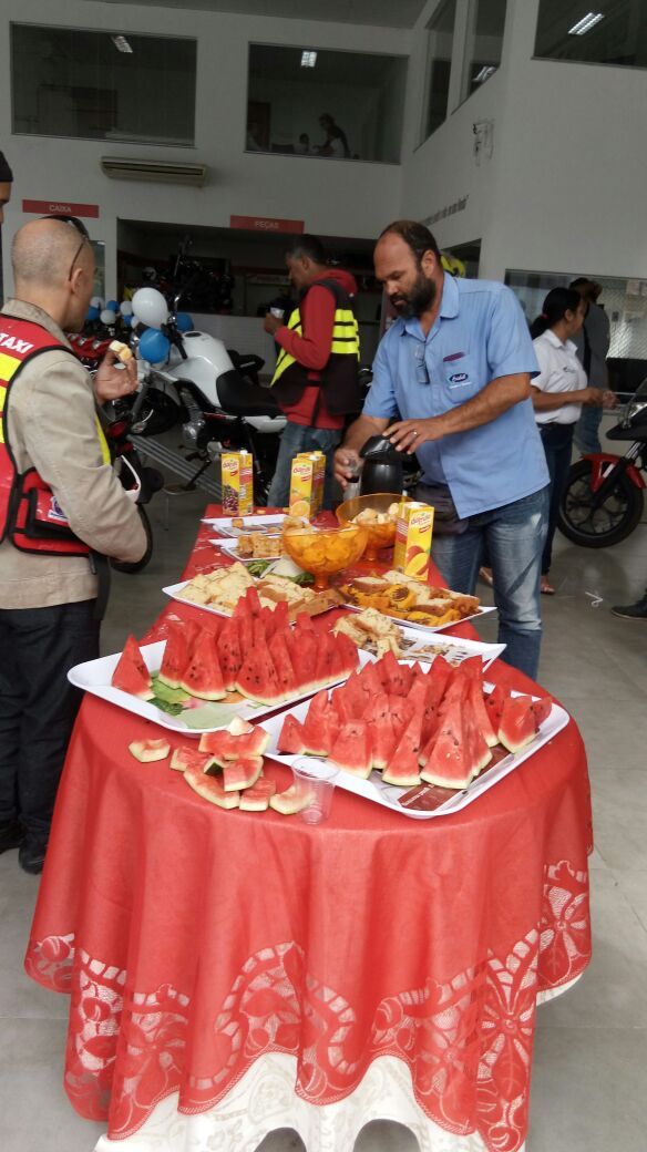 Os mototaxistas de Eunápolis a convite da Concessionária Brasmoto participaram na manhã de sexta-feira (15) do café da manhã de apresentação da nova linha CG 160 Fan ano 2018.