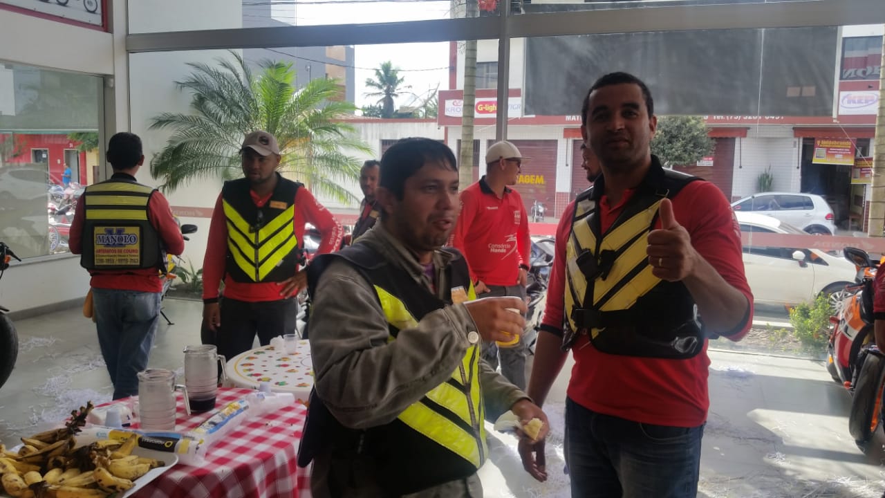 A Concessionária Brasmoto – Honda em comemoração ao Dia Nacional do Motociclista que se comemora no dia 27 de Julho, promoveu na loja de Eunápolis, café da manhã aos motociclistas e mototaxistas, com a distribuição de brindes e o preenchimento de cupons para concorrerem a diversos prêmios.