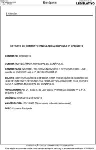 Veja Contrato firmado entre Câmara Municipal e a empresa Infortel Telecomunicação: