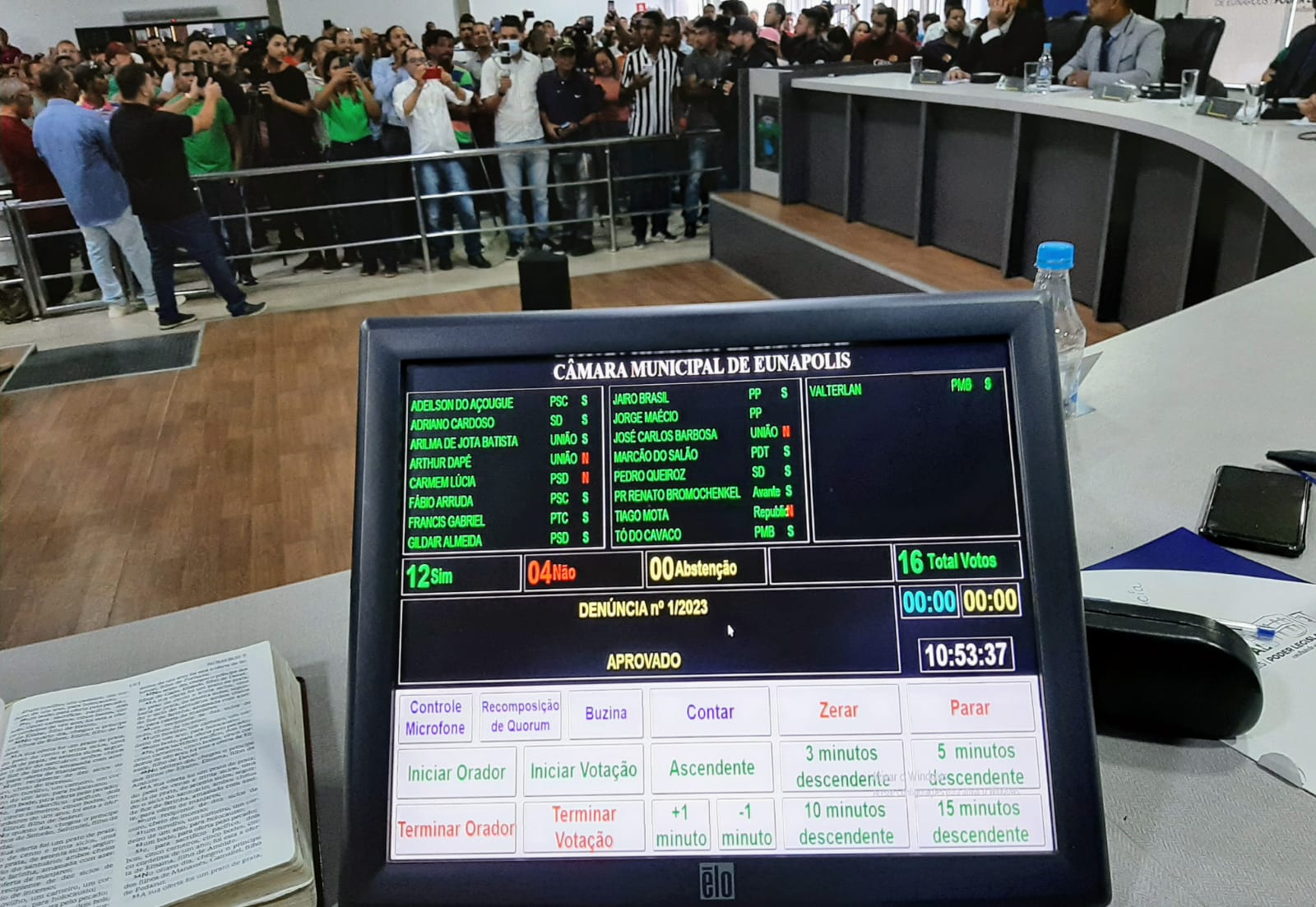Por 12 votos a 4, a Câmara de Vereadores de Eunápolis recepcionou, na manhã desta quinta-feira, dia 23 de março, a denúncia de improbidade administrativa, possivelmente cometida durante a Festa São João Encontra com o Pedrão, ocorrida em 2022 sob a responsabilidade da Prefeitura de Eunápolis. A sessão ordinária foi bastante concorrida, com a presença de funcionários do município e diversos moradores interessados em acompanhar a matéria.