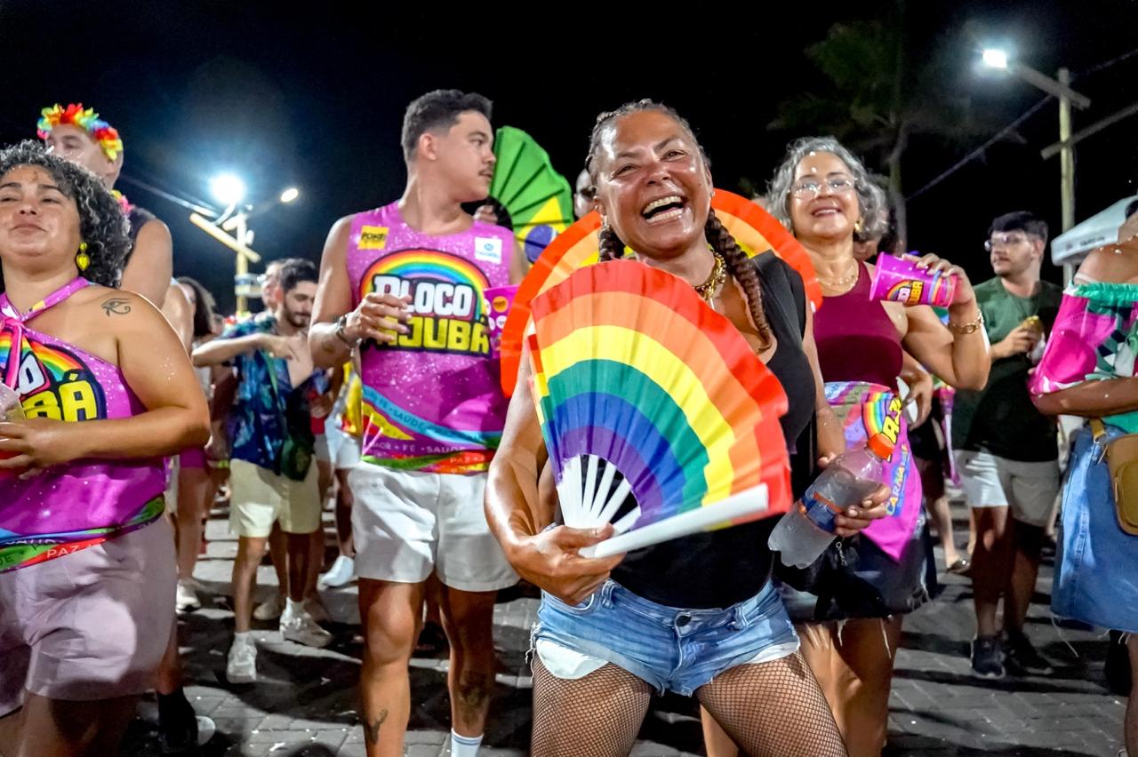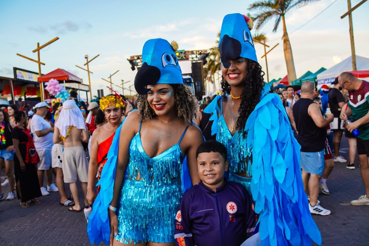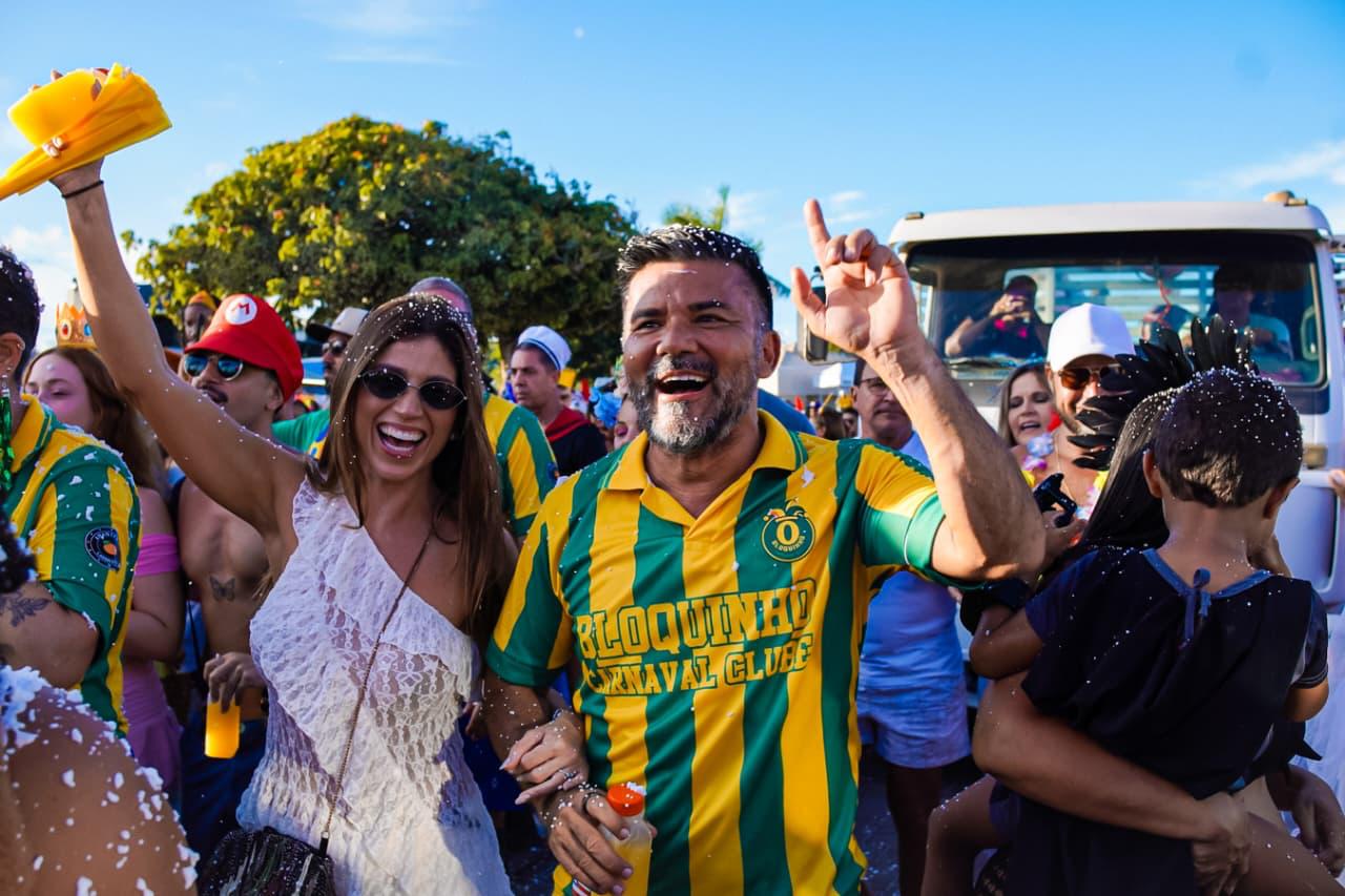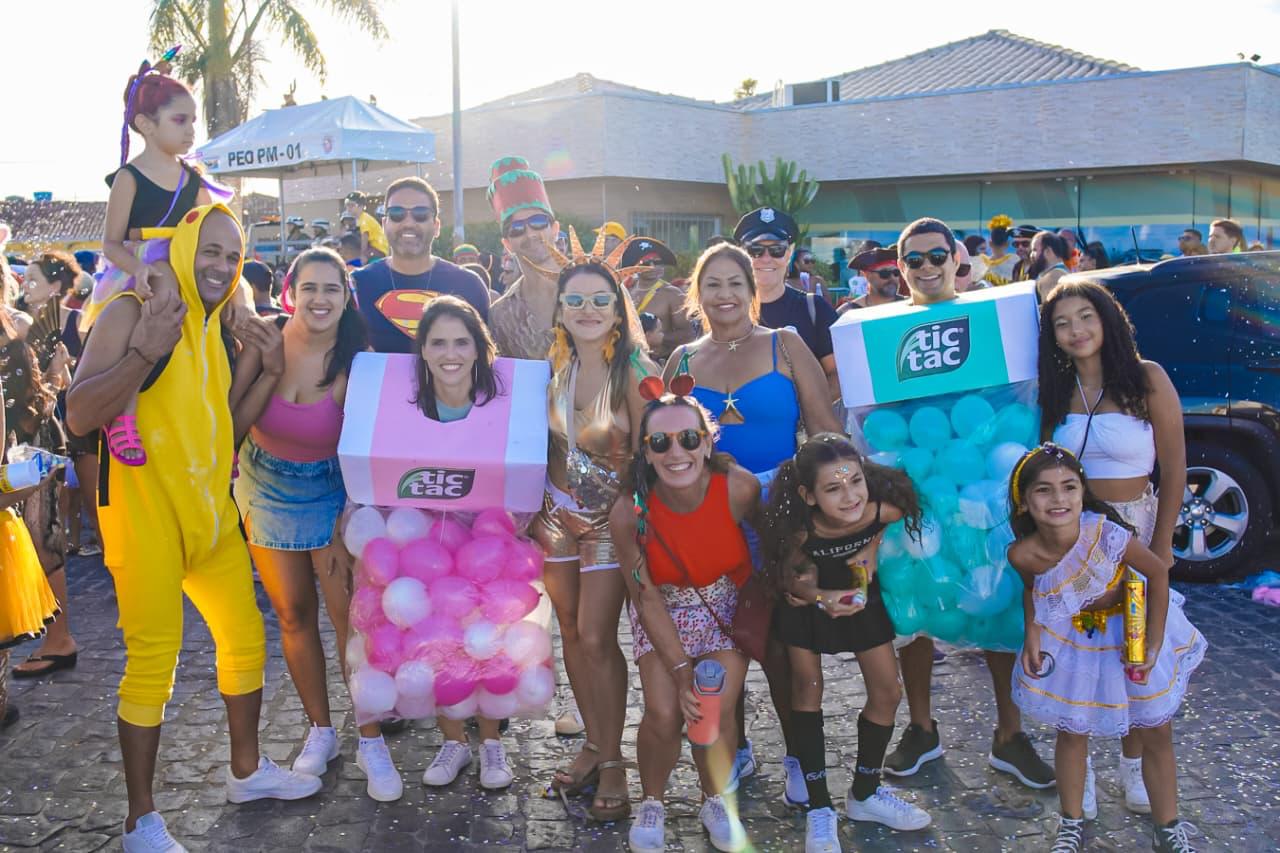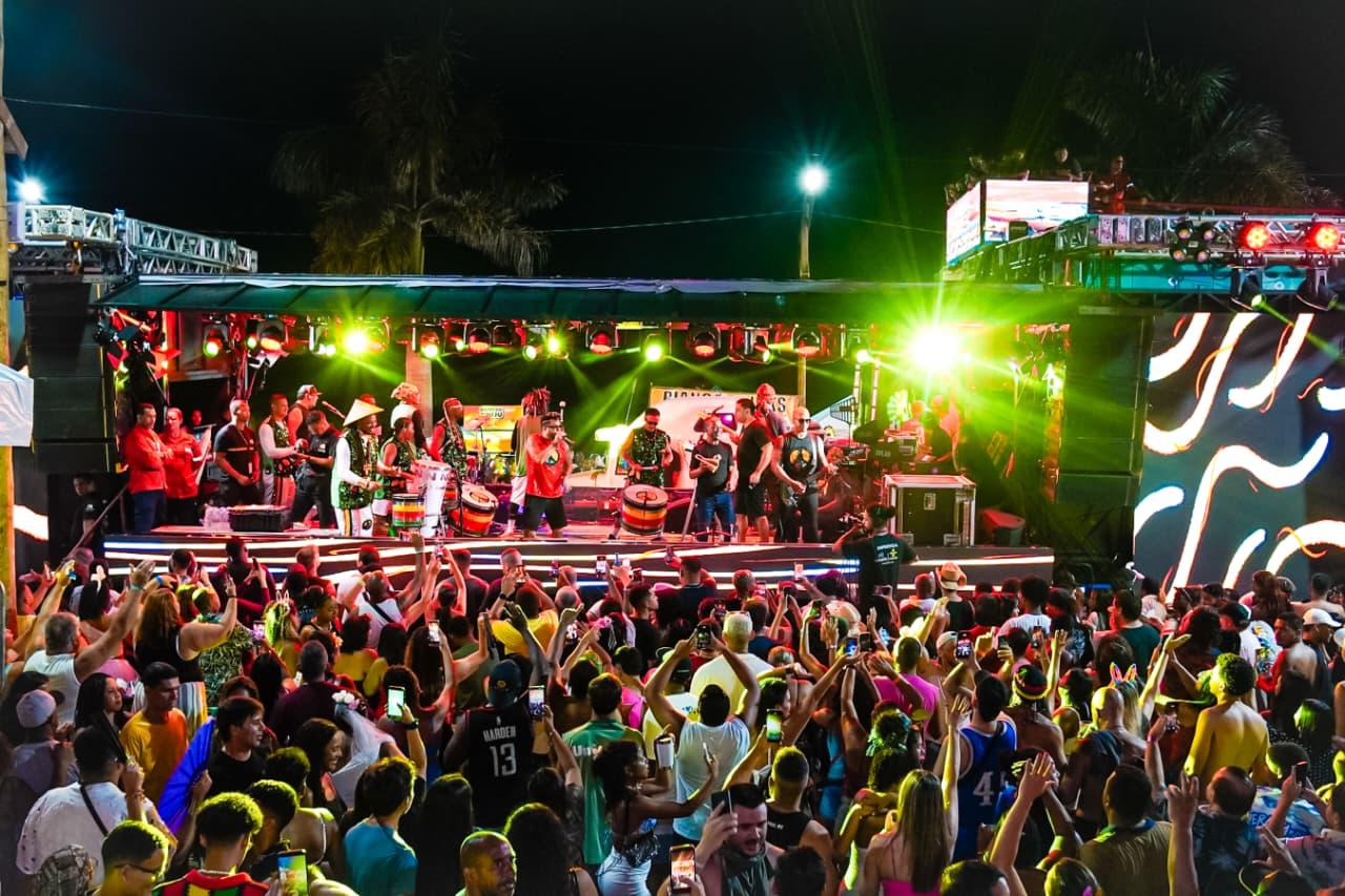 Só que o enredo mais mágico do dia começou cedo com o tradicional Bloquinho: o momento em que a fantasia não é roupa, é autorização. É quando o adulto vira criança, o tímido vira coreógrafo, e até o mais sério descobre que tem, sim, uma vocação secreta pra marchinha, sambinha, pagode e axé, tudo junto, tudo misturado, do jeitinho que a alegria gosta. Da concentração no píer pra rua, foi uma multidão desfilando imaginação como se fosse confete, tinha brilho, tinha personagem, tinha “criatura da noite” ao sol das 14h e tinha aquele amigo que some e reaparece com outra fantasia, como se tivesse um camarim portátil e um pacto com o Carnaval. E junto com essa maratona gostosa, também foi dia de As Barguncetes, puxando a “baguncinha boa”, e dois blocos Bora Mais Eu e o Pajubá.