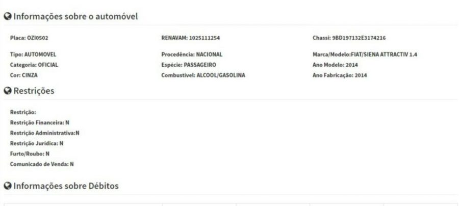 Solicito informação referente as multas registrada no DETRAN-BAHIA, do carro oficial da Câmara Municipal de Eunápolis, Siena Attractive, Placa OZI 0502, Renavam 1025111254.