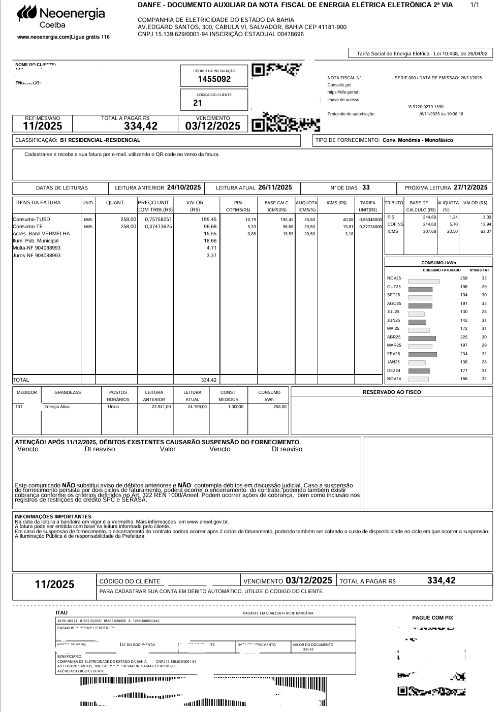 Uma conta de energia com 258 kWh de consumo mensal expõe o impacto direto da proposta que altera a cobrança da taxa de iluminação pública (COSIP). Atualmente, esse consumidor paga cerca de R$ 18,66, valor que mantém relação com o consumo de energia elétrica. No entanto, pela nova tabela apresentada, o valor da taxa deixa de depender essencialmente do consumo e passa a variar conforme a classificação do consumidor.