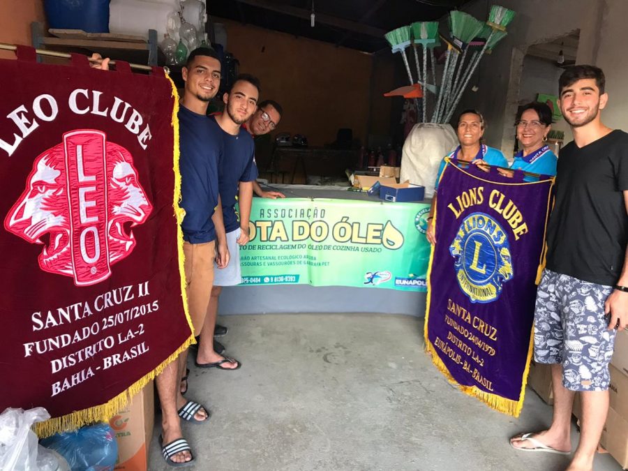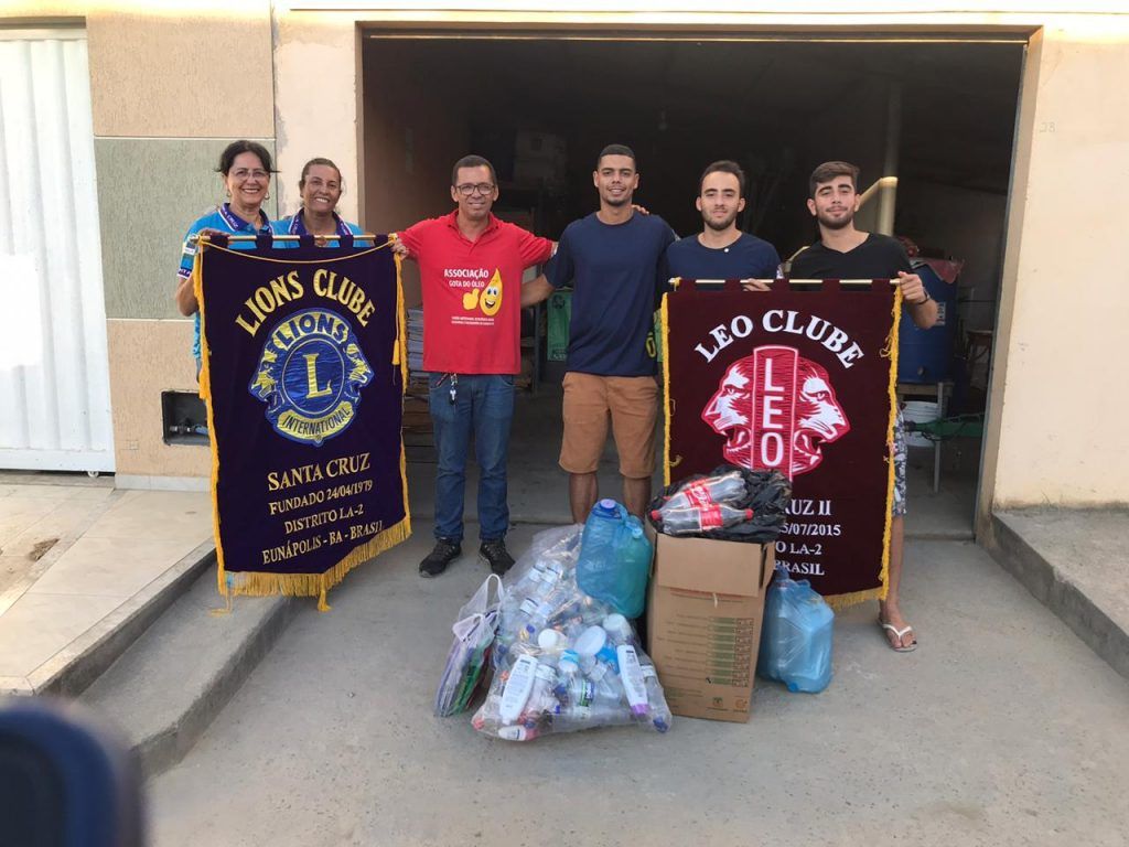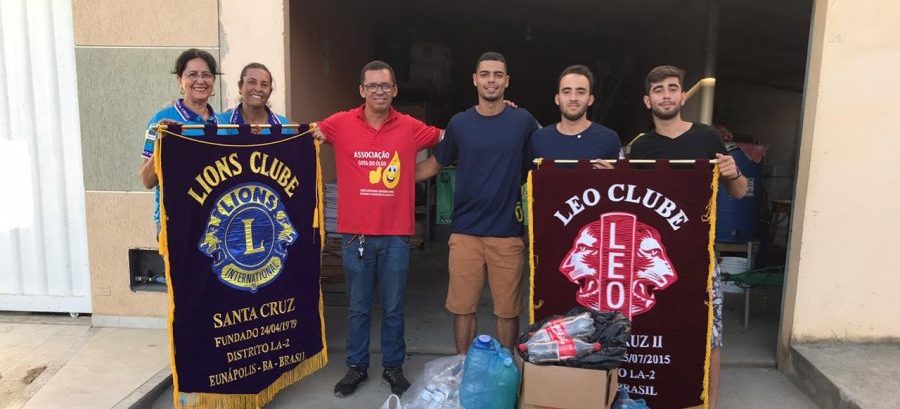 Foi dado início a Campanha de Meio Ambiente, sábado, 29/02/2020, pelo LIONS CLUBE SANTA CRUZ, juntamente com o LEO, tendo como Presidente Pedro Denardi juntamente com os LEOs, Jalon, Ailton e demais membros da Ala Jovem deste Clube de Serviços, doaram garrafas plásticas descartáveis e livros velhos para o Projeto de Coleta Seletiva Solidária de Materiais Recicláveis da AGO – Associação Gota do Óleo de Eunápolis, sendo assistida por 12 membros da diretoria e mais de 70 famílias do projeto de geração de emprego e renda.