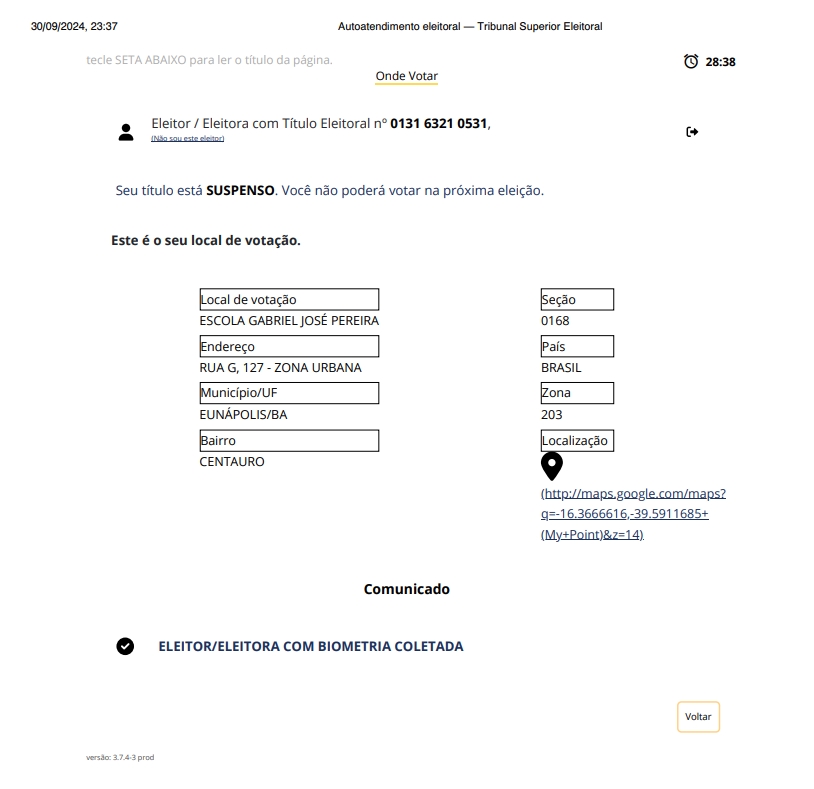 Apesar de Robério Oliveira (PSD) ter conseguido liminar para concorrer a eleição este ano em Eunápolis, o político não poderá votar no dia 6 de outubro. Os dados com a informação são públicos e qualquer cidadão pode fazer a verificação da informação no site do TSE.