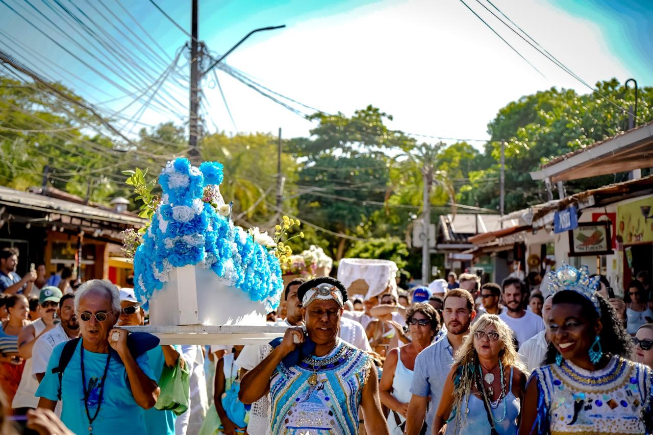 Em Trancoso, o distrito também amanheceu no movimento, com terreiros e grupos em atividade desde cedo. Teve Cortejo de Iemanjá com concentração no Quadrado, reunindo a comunidade do Ilê Airá Modé Oya Aféfé Àsé Ajàgúnà, sob condução de Pai Rony de Airá. E teve a celebração do Ilê Axé d’Omim, com café da manhã no terreiro e a saída do cortejo com as oferendas rumo à Praia dos Nativos, levando cantos, passos e o axé que atravessa gerações. Ainda em Trancoso, Pai Júnior e a Casa Clube Trancoso organizaram um dia de homenagem com receptivo, cortejo e saída do barco de Iemanjá, além do café compartilhado.