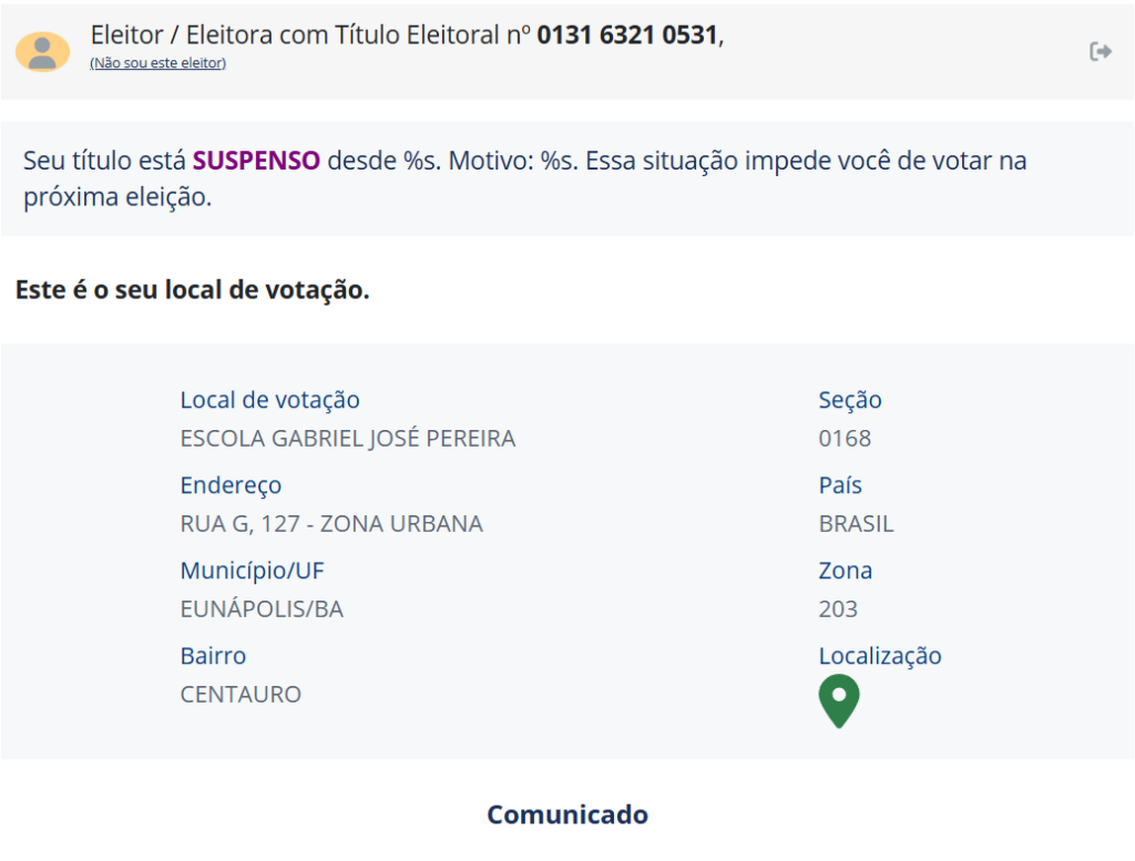 O juiz afirma que no sábado, 5 de outubro, recebeu uma ligação de Robério Oliveira (PSD), querendo saber como ele iria votar, a dúvida de Robério era em razão do mesmo está constando no site do TSE que seu título estava suspenso, impedido de votar.