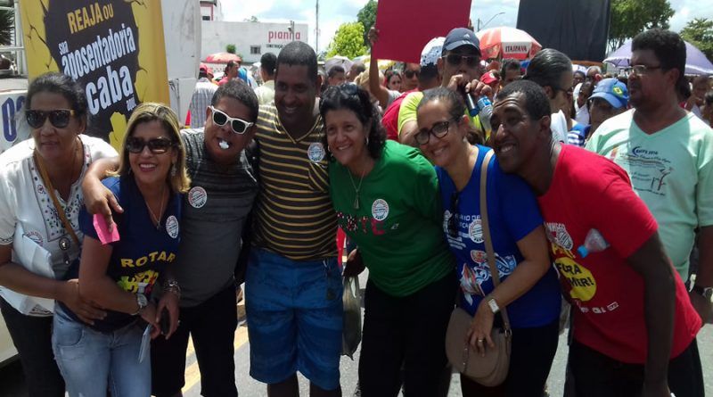 APLB – Sindicato representa sobre o comando da Presidente a professora Jovita e os professores juntamente com alunos e movimentos sem terra, fizeram uma grande caminhada na Quinta-Feira dia 23 de março, passando pelas principais ruas do centro da cidade em um protesto onde encerra a semana de paralisação nacional dos professores, o ponto principal das manifestações esse ano feitas pelas entidades ligadas aos professores em todo país e em Eunápolis foi a resistência contra o que os professores chamam de golpe da presidência, em que o Governo chamado por muitos de golpista o Presidente Michel Temer (PMDB), estar articulando no congresso nacional com seus aliados na câmara dos deputados e no Senado Federal para fazer a reforma da Presidência.