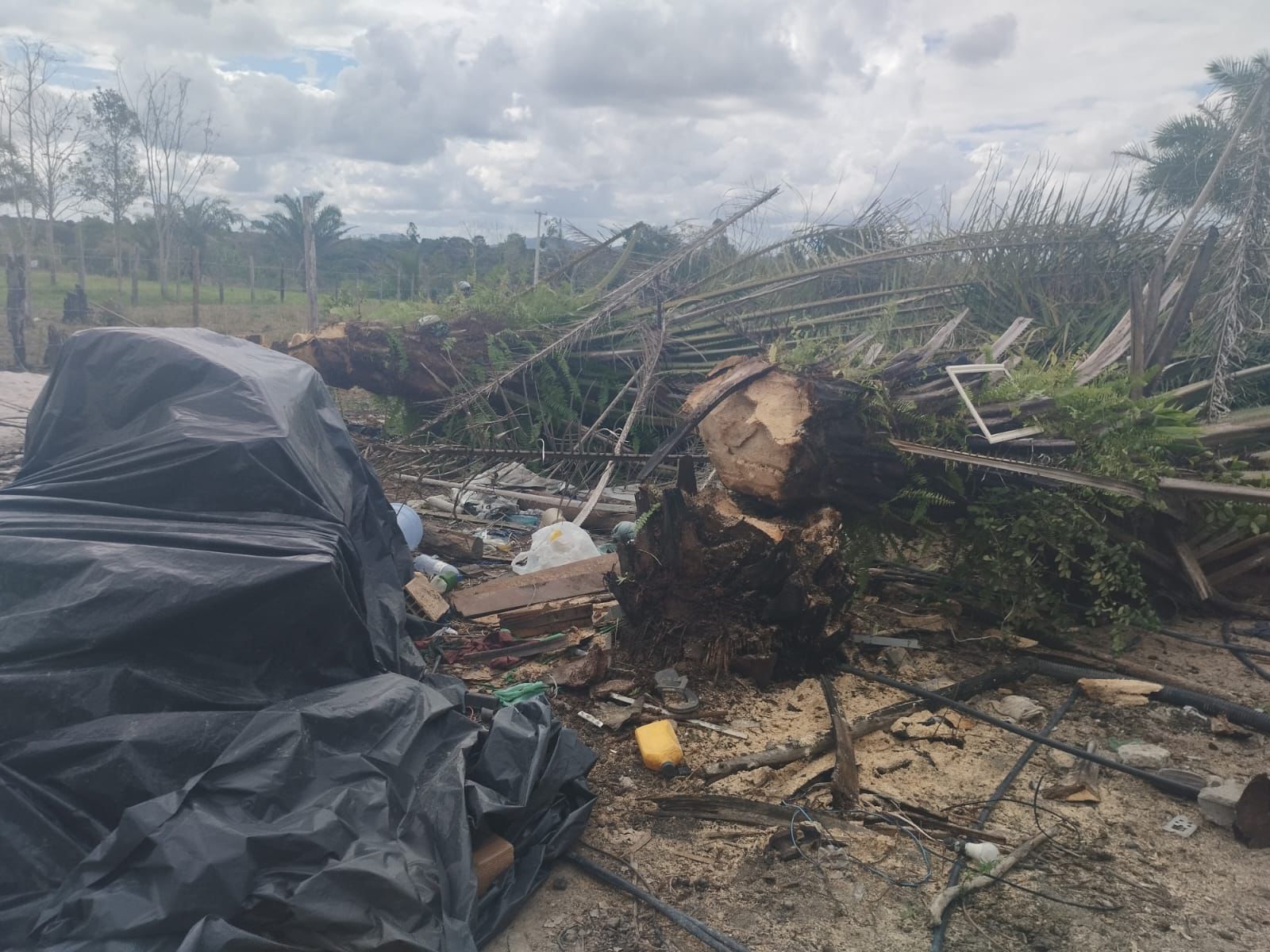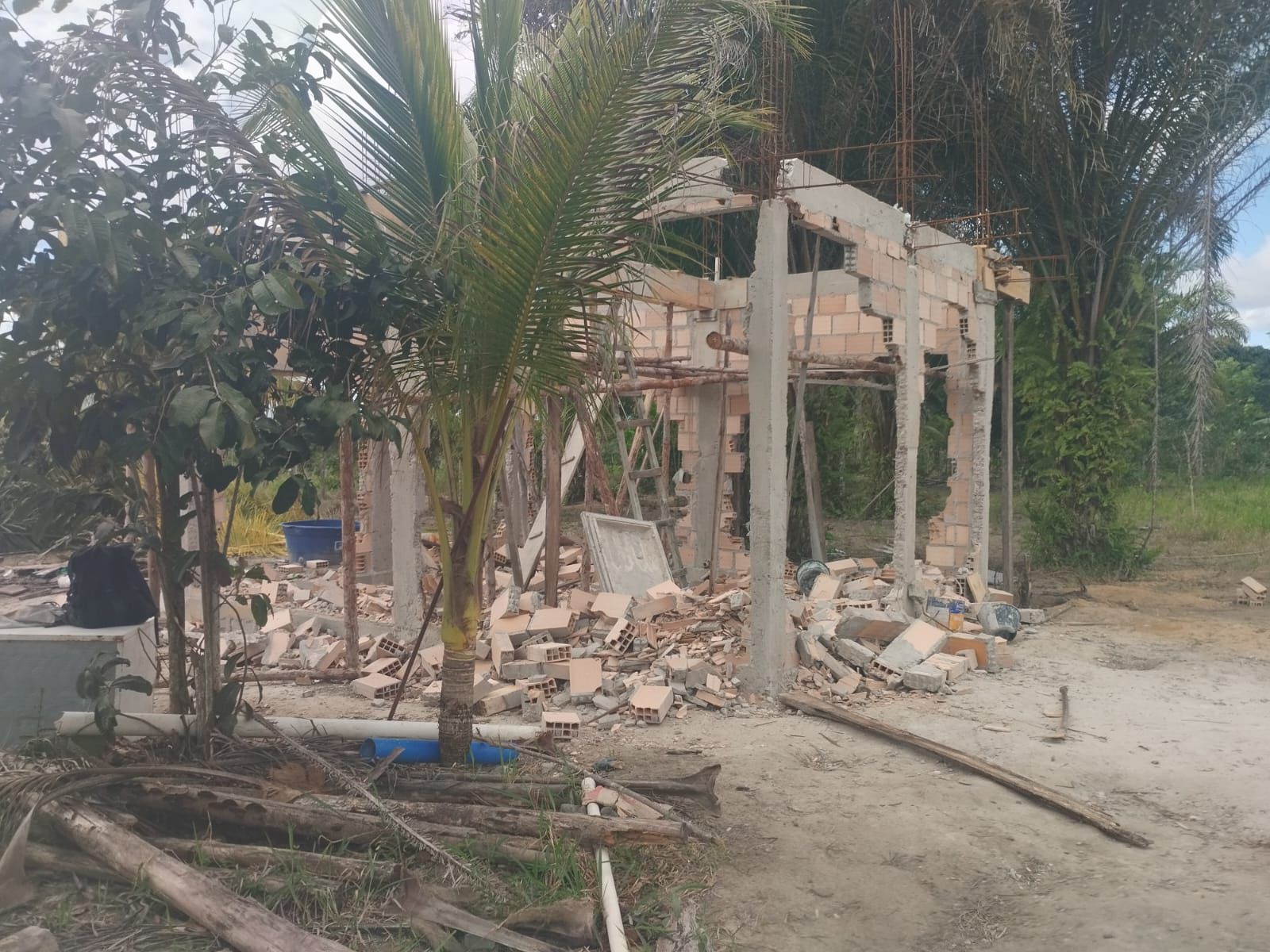 O mandado de reintegração de posse foi cumprido nesta terça-feira, 28 de abril, no Sítio Natureza Viva, no Assentamento 3 de Julho. Imagens registradas no local mostram construção parcialmente demolida, móveis retirados, materiais espalhados e árvores cortadas, reforçando o cenário de conflito possessório descrito na decisão judicial.