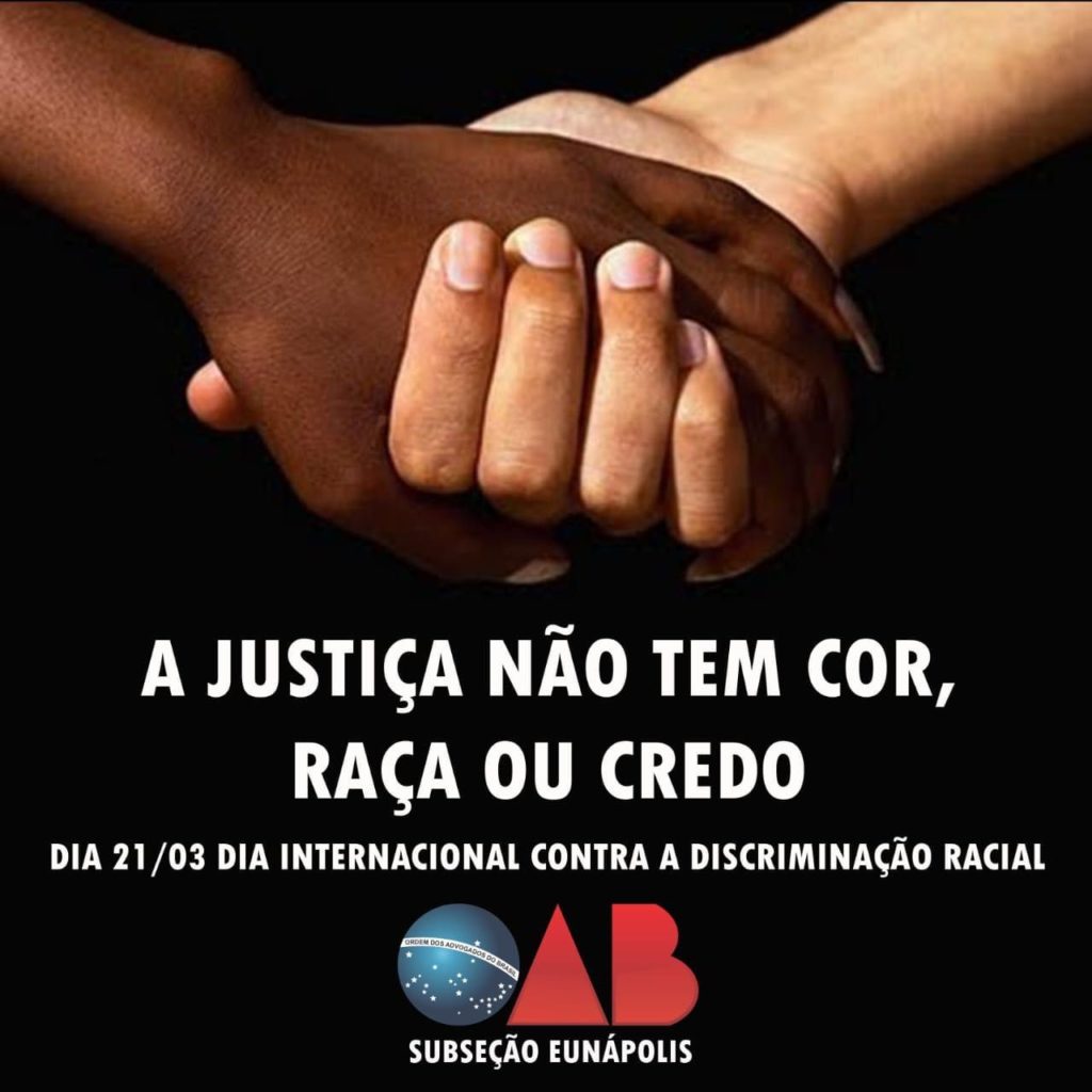 Nesse ideal de justiça e de igualdade racial, a OAB/Eunápolis reafirma o compromisso institucional em defender os princípios constitucionais que vedam a discriminação de raça, cor, opção sexual, origem étnica, religião, assegurando a necessidade pela defesa da promoção da igualdade, destacando a importância do combate à discriminação racial e de que toda pessoa tem direito a liberdade sem distinção de qualquer espécie ou condição.