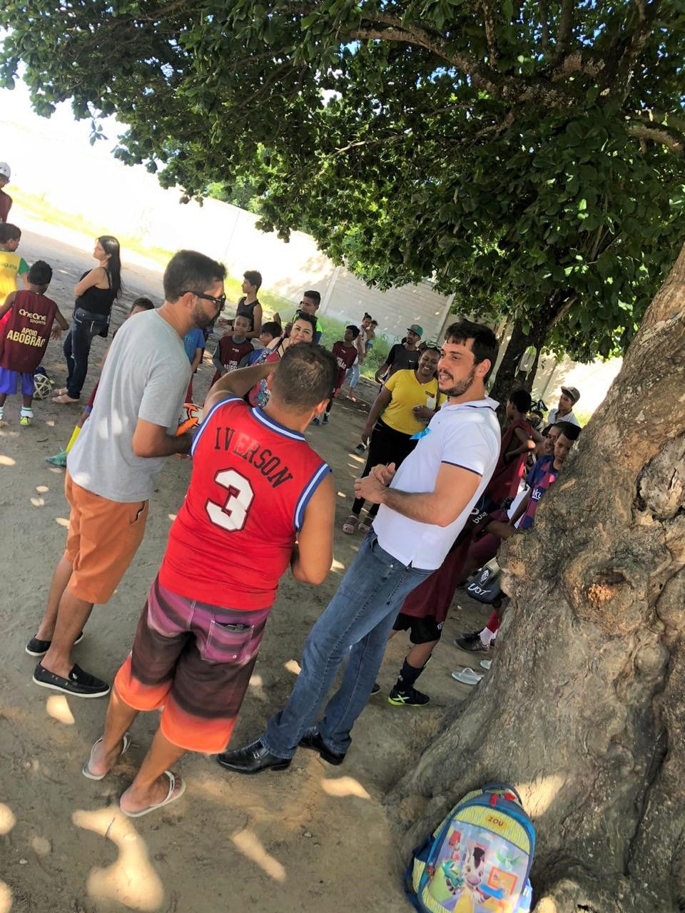 Com o advogado Wanderson Barros (o Nem), Ramos Filho visitou a escolinha de futebol ‘Rompendo a Fé’, um projeto comunitário no Bairro Moisés Reis, idealizado pelos treinadores Adailson Araújo Coutinho (Dado) e Gilson Ferreira que atende quase 100 crianças com treinos as terças, quintas e sábados, pela manhã e tarde.