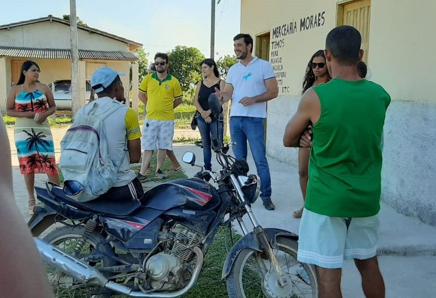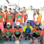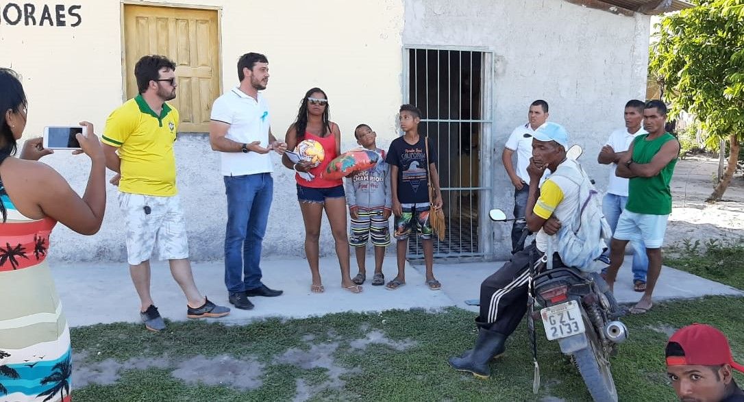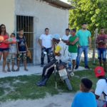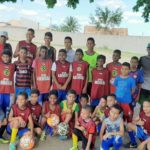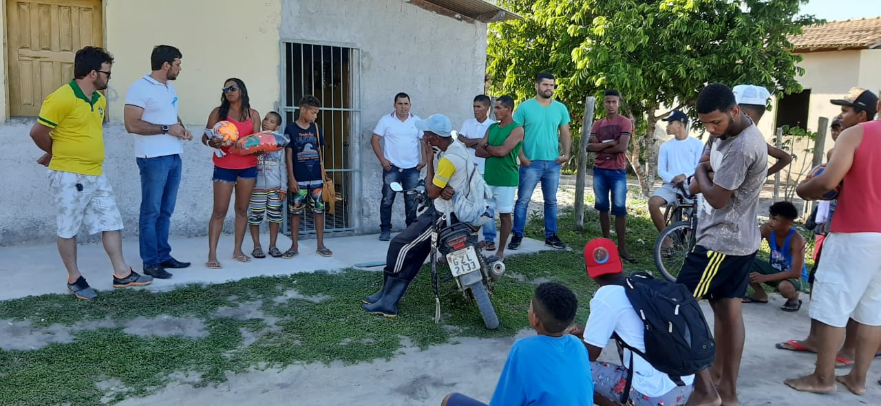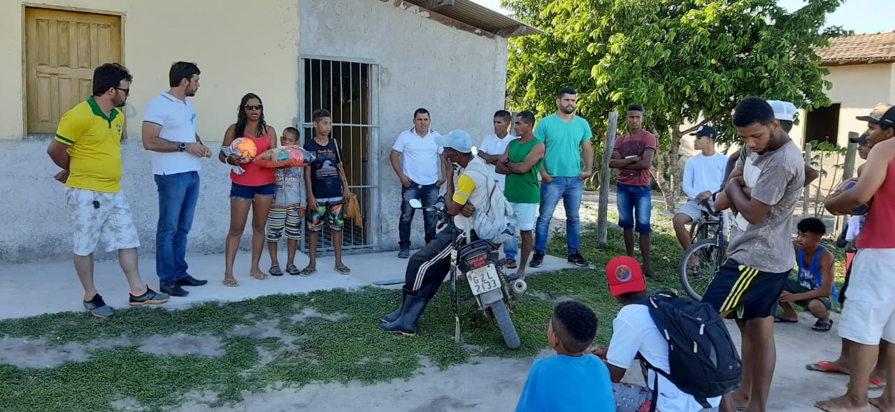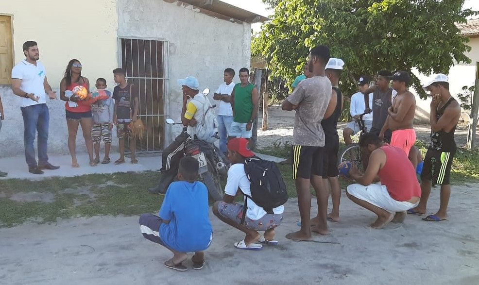 À tarde, ao lado do presidente do Diretório Municipal do PSC de Eunápolis, Marcos Bromochenkel e da pré-candidata a vereadora, Cristiane Souza Gusmão, conhecida como ‘Cristiane do Maravilha’, Ramos Filho visitou o projeto Santa Maria e fez entrega de uniformes e bolas de futebol para o time amador local.
