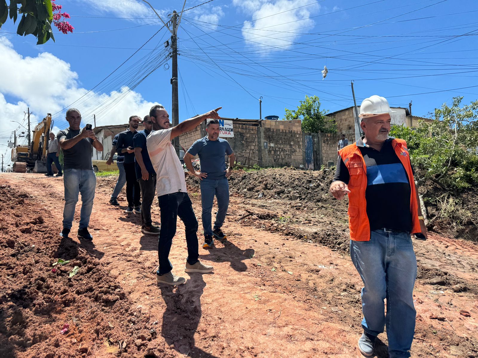 Atualmente, os trabalhos estão na fase de aterro, etapa essencial para a preparação da base que receberá, posteriormente, a pavimentação em bloquetes. Na semana passada, a obra foi acompanhada de perto pelo vice-prefeito Paulinho Toa Toa, pelo secretário de Serviços Públicos Luciano Alves e pelo vereador Calango, que estiveram no local verificando o andamento dos serviços.