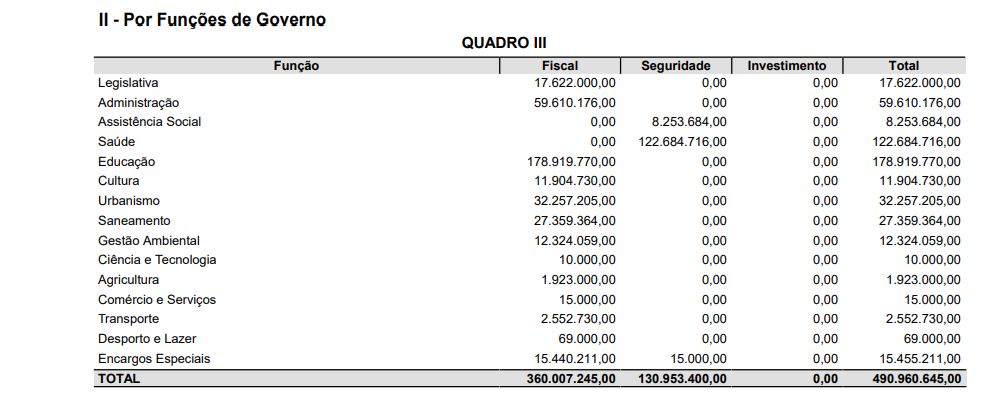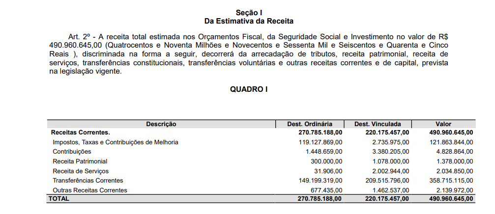 Do valor total projetado, R$  490.960.645,00, a Câmara de vereadores irá receber R$ 17.622.000,00 (Dezessete milhões seiscentos e vinte e dois mil reais), para manutenção do legislativo em 2025.