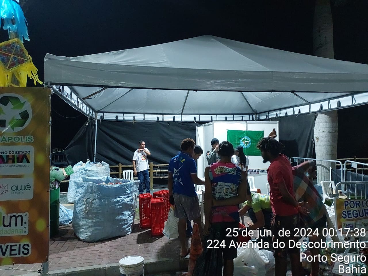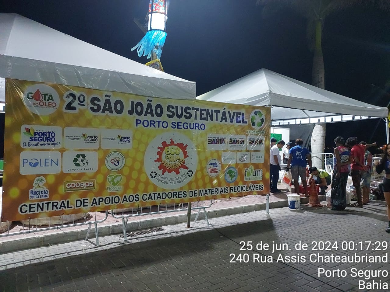 Durante os festejos juninos em Porto Seguro dos dias 20 a 24 de junho de 2024 na Passarela da Cultura a AGO Associação Gota do Óleo montou uma “Central de Apoio aos Catadores e Catadoras de Materiais Recicláveis” fazendo o cadastro dos catadores e entregando para eles gratuitamente: Camisas, protetores auriculares, luvas e sacos de ráfia para os catadores fazerem a coleta de latinhas de alumínio, plásticos, papelão e garrafas de vidros no circuito do São João.