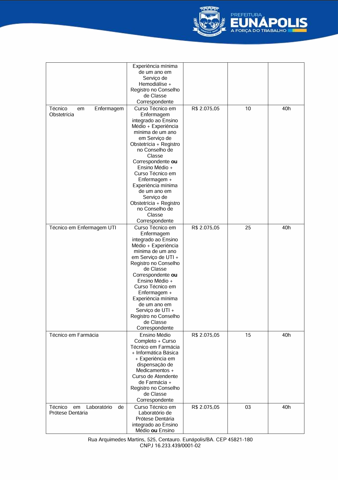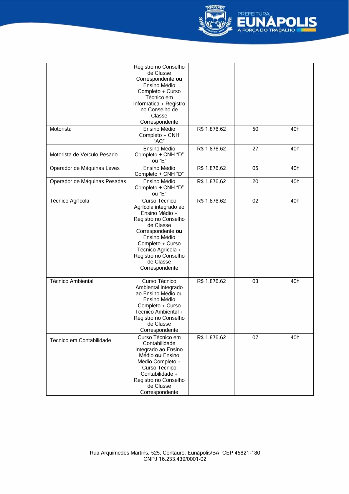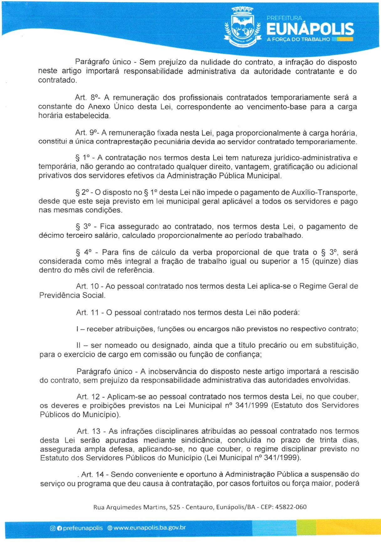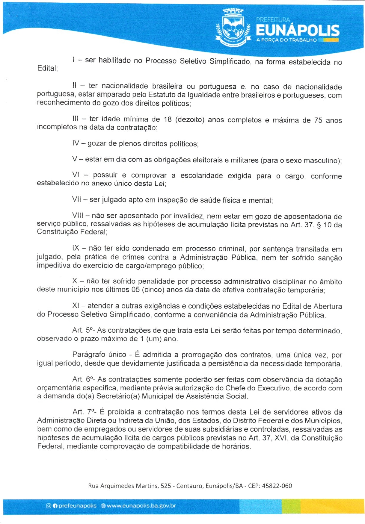 O prefeito de Eunápolis, Robério Oliveira, encaminhou à Câmara dois projetos de lei que mexem diretamente com a estrutura do funcionalismo municipal. No Projeto de Lei nº 007, o Executivo pede autorização para realizar processo seletivo simplificado e contratar 15 profissionais temporários para atuação na Cozinha Comunitária, dentro do Programa Bahia Sem Fome e do SISAN: 8 auxiliares de serviços gerais, 4 cozinheiras e 3 nutricionistas.