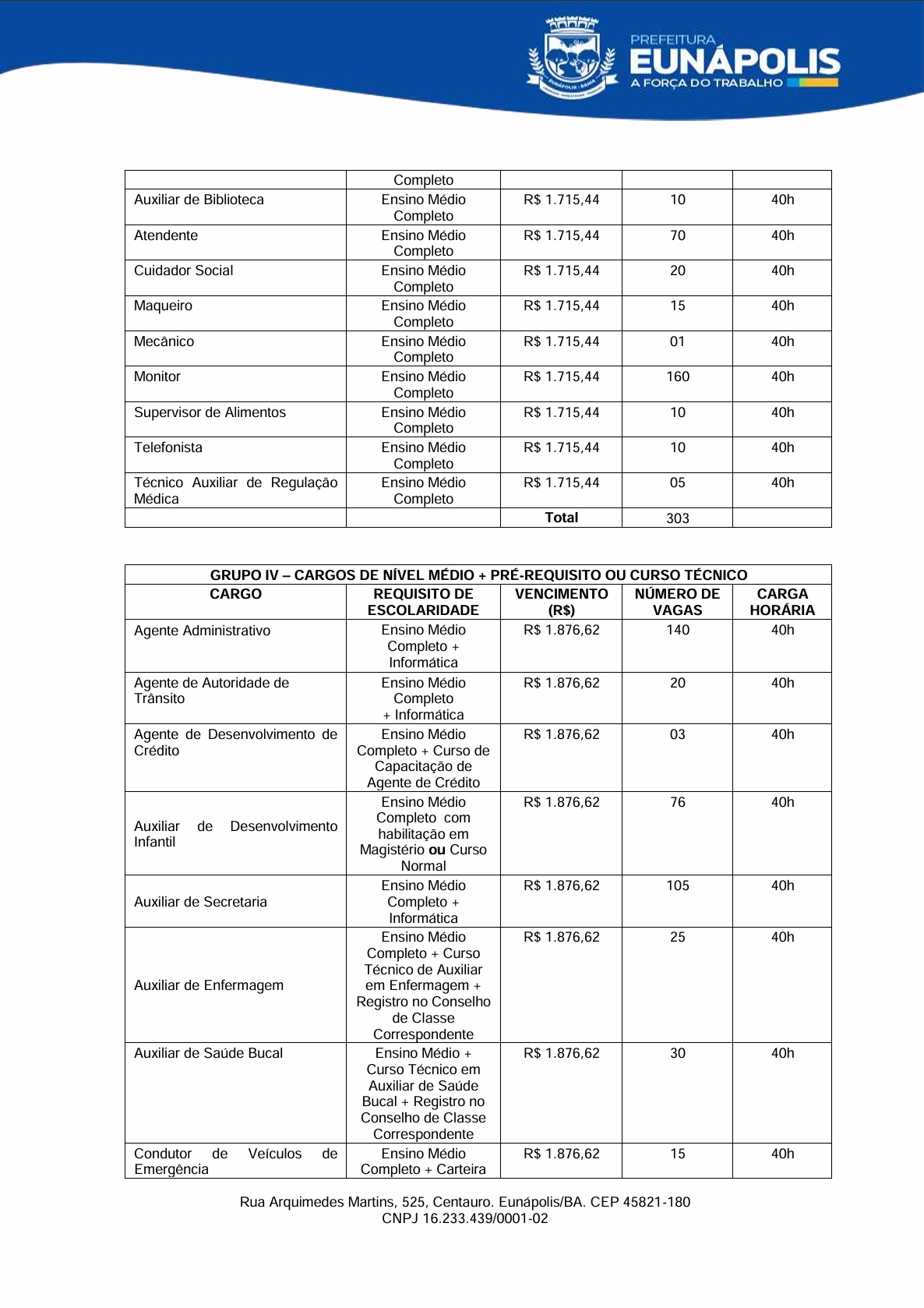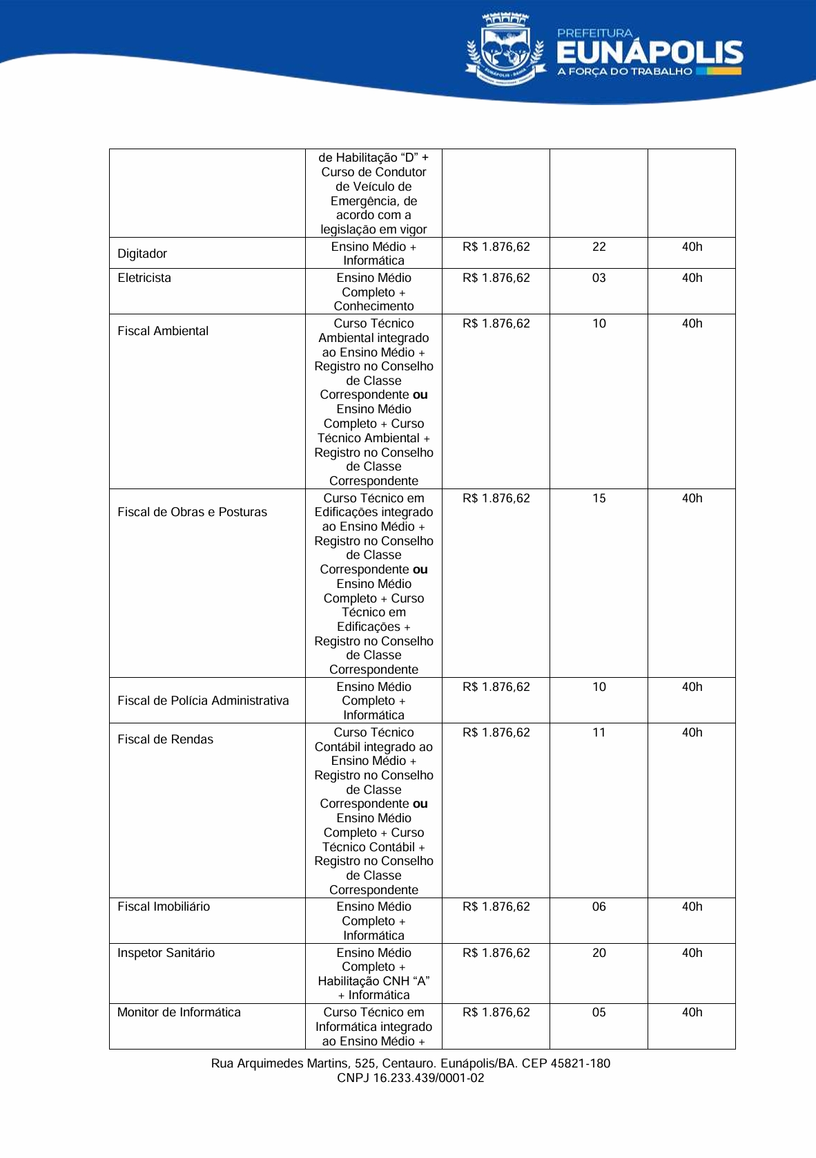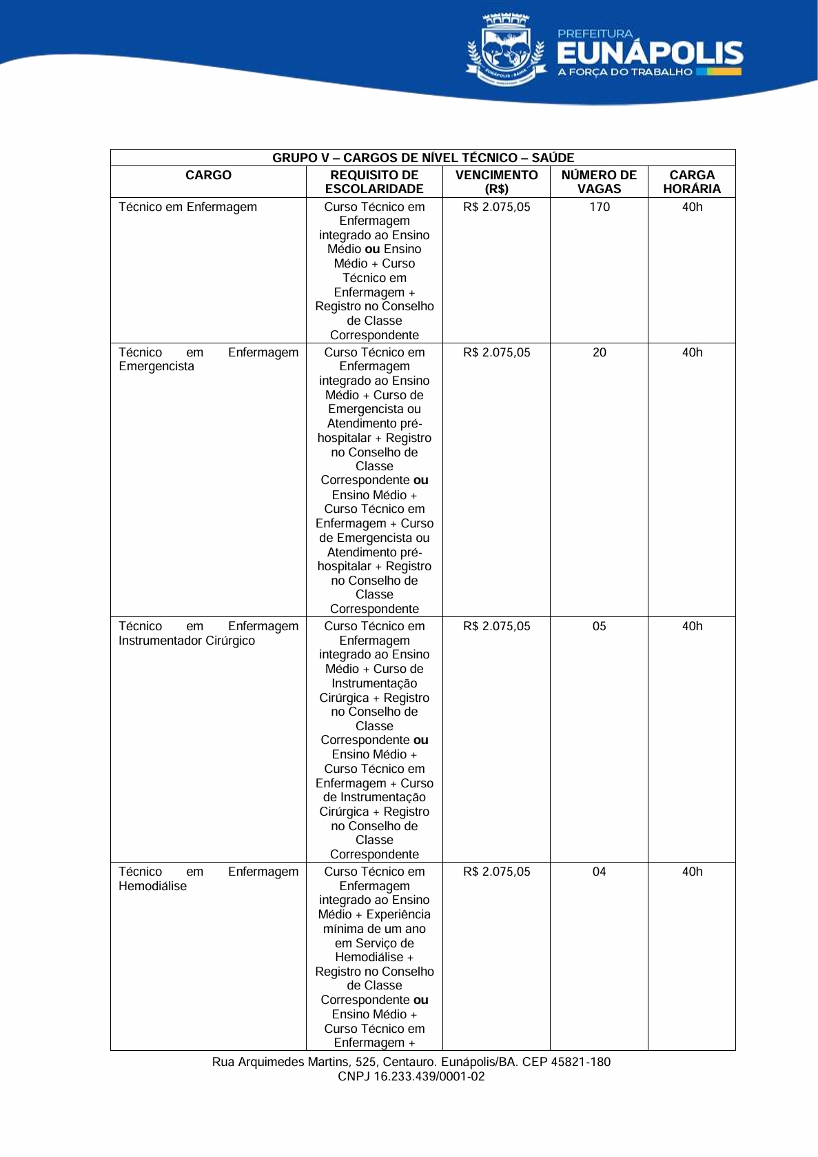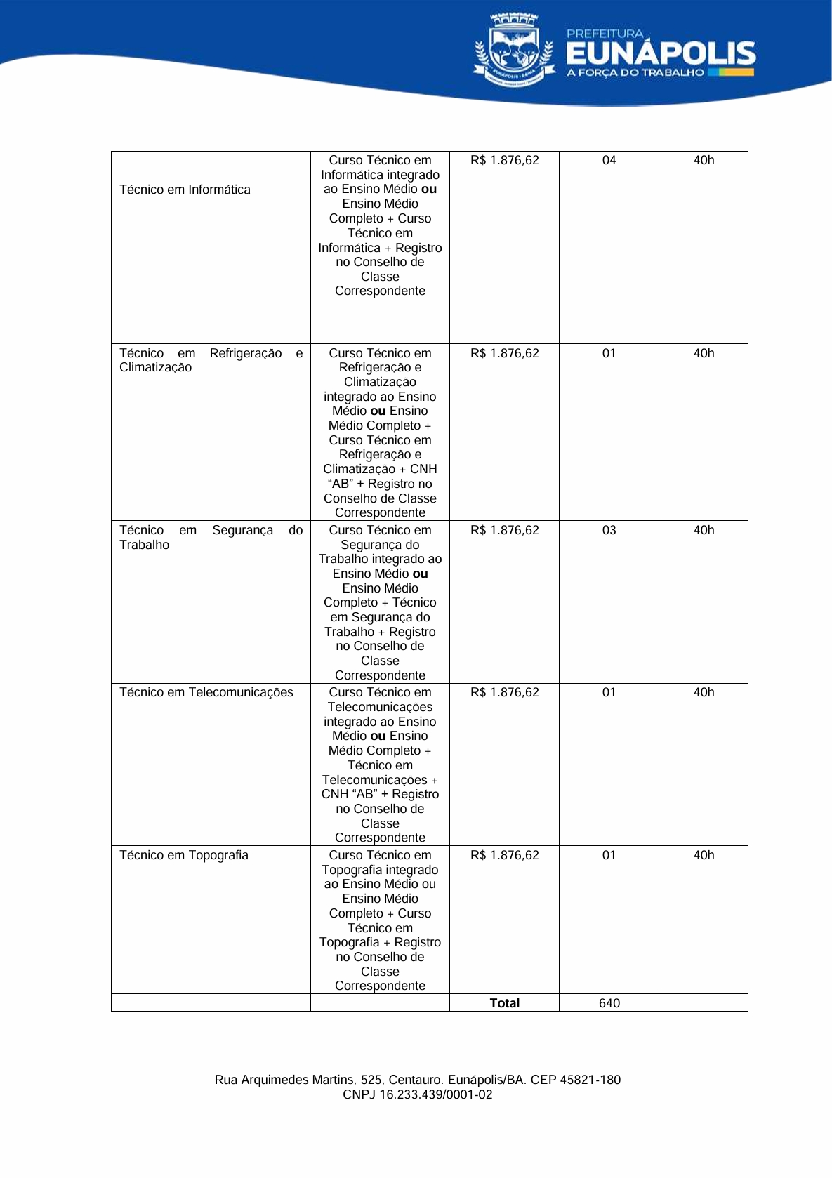 O prefeito de Eunápolis, Robério Oliveira, encaminhou à Câmara dois projetos de lei que mexem diretamente com a estrutura do funcionalismo municipal. No Projeto de Lei nº 007, o Executivo pede autorização para realizar processo seletivo simplificado e contratar 15 profissionais temporários para atuação na Cozinha Comunitária, dentro do Programa Bahia Sem Fome e do SISAN: 8 auxiliares de serviços gerais, 4 cozinheiras e 3 nutricionistas.
