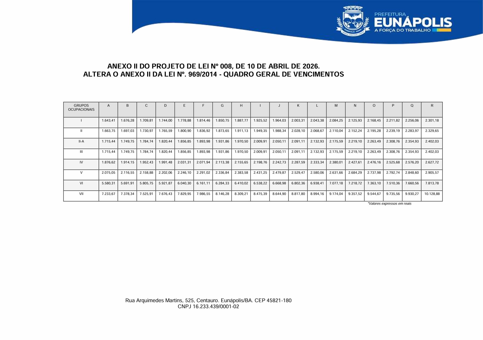 Projeto de Lei 008 10-04 Reajuste Quadro Geral e Procuradores. 8%. 2026