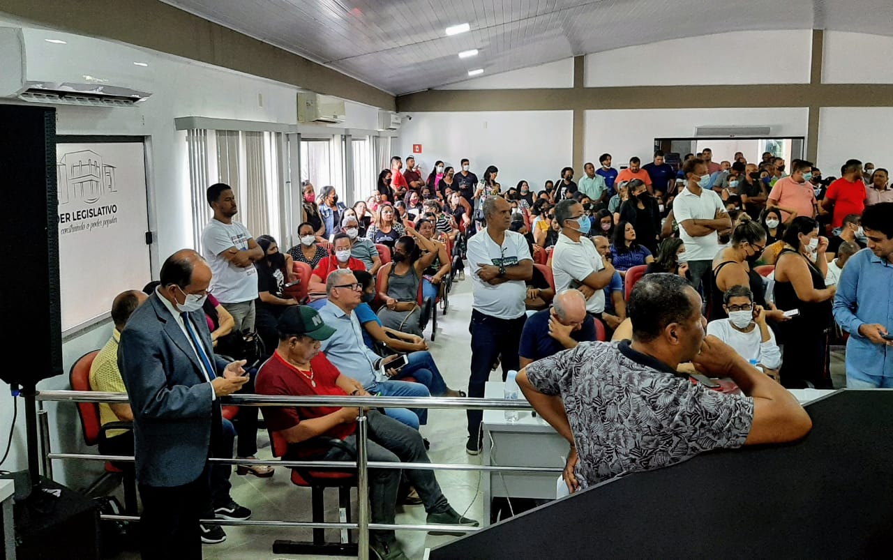 Os professores, que lotaram o auditório, em greve desde o dia 19 de abril, reclamam porque o projeto que concede reajuste de 14,42% deixa de fora do Piso Nacional do Magistério, os professores de Nível I que vão receber R$ 3.256,00 conforme aprovado pela Câmara.