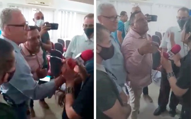 Os repórteres Mestre Binha e Aline Cabral, foram xingados e destratados por homens identificados como servidores públicos do município que estavam presentes ao auditório a Casa na manhã desta quinta-feira, dia 05 de maio.