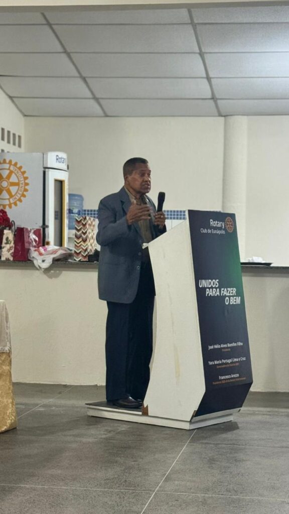 Um dos momentos mais marcantes da noite foi a participação do professor Raimundo Fonseca, primeiro presidente do Rotary Club de Eunápolis. Em seu discurso, ele falou com emoção sobre a criação do clube no município e destacou a importância da atuação rotária em prol de causas humanitárias no mundo todo.