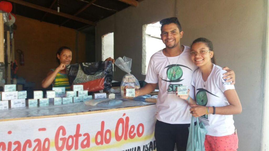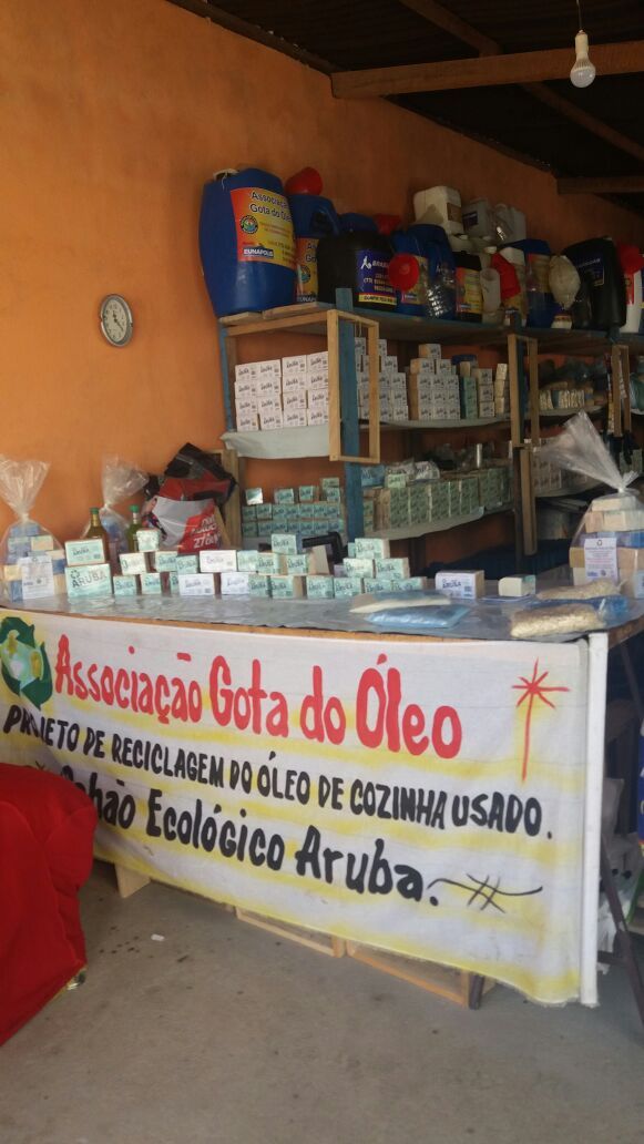 “Fomos recebidos de braços abertos e foi gratificante perceber o carinho que Maria José Silva da Associação Gota do Óleo, teve ao falar sobre o projeto da coleta do óleo de cozinha usado para fazer o Sabão Artesanal Ecológico Aruba, das bolsas feitas de lona de publicidade e as Ecobags feitas de retalhos de pano” disse Mirella Costa acrescentando que eles viram como é feito o sabão em pó, acompanharam alguns processos para confecção do sabão Aruba e, ao final da visita, ganharam sabão para conhecer melhor o produto.