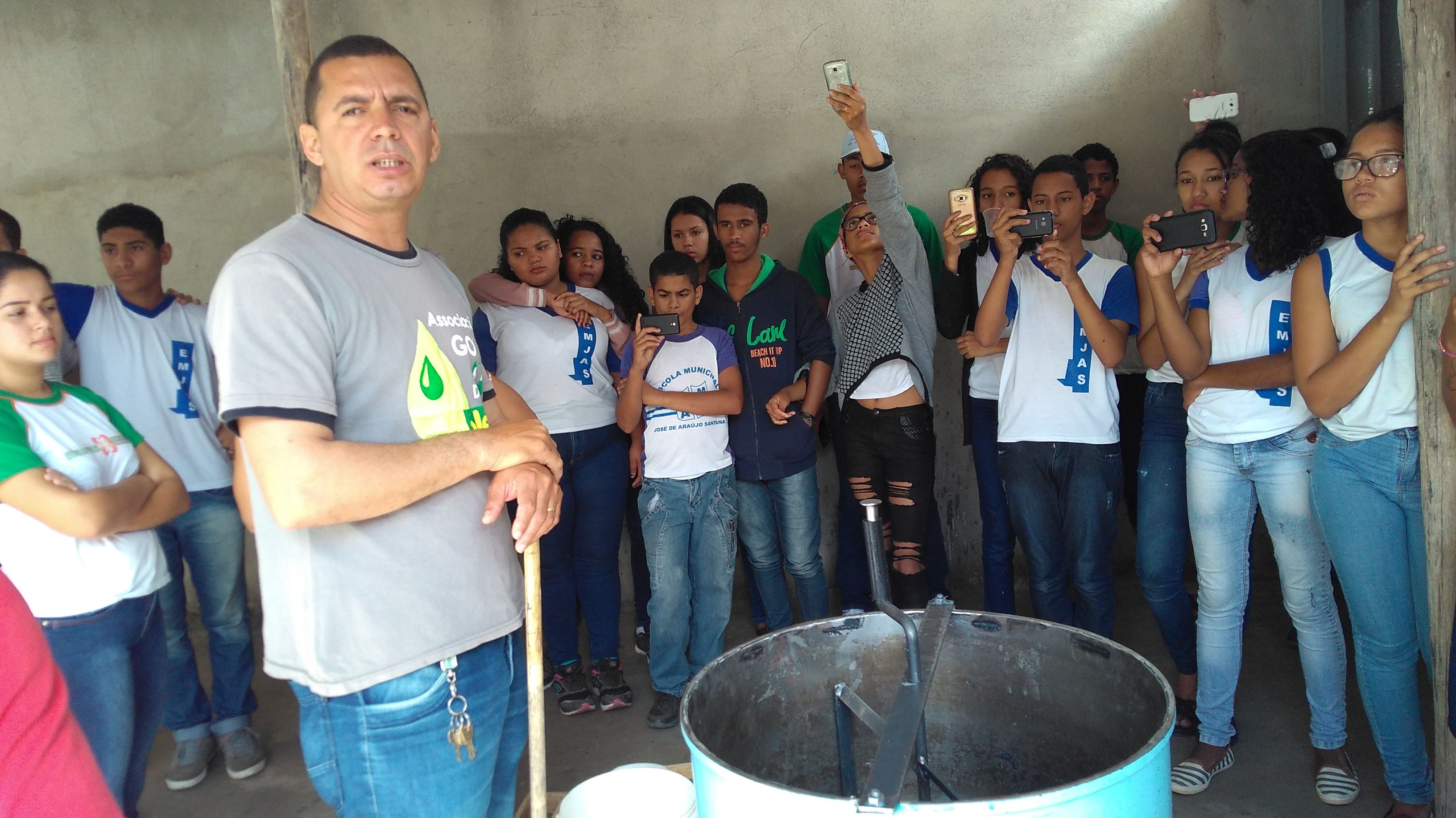 Na manhã de quarta-feira (20), 41 alunos na faixa etária de 13 a 14 anos de idade dos 7º. A e 8º. B do turno matutino da Escola Municipal José de Araújo Santana acompanhados do professor Leonardo, da matéria de geografia e da coordenadora pedagógica da escola, Ana Paula Santos Silva visitaram a Associação Gota do Óleo e participaram de uma aula de educação ambiental.