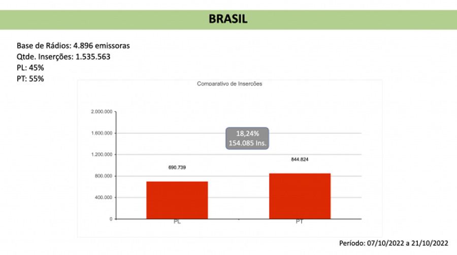 A campanha de Jair Bolsonaro ingressou com ações no Tribunal Superior Eleitoral (TSE) para denunciar que o presidente da República supostamente teve, nas últimas duas semanas, 154 mil inserções de rádio a menos que o ex-presidente Lula.