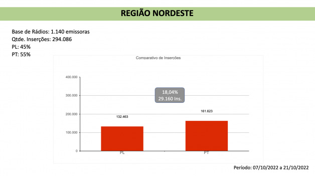 “Quando situada a análise apenas no Estado da Bahia, o maior colégio eleitoral ponderado do Nordeste e do PT no Brasil, verifica-se a desproporção, ainda maior, de 7.249 inserções“, diz trecho da inicial do processo administrativo protocolado nesta segunda-feira.