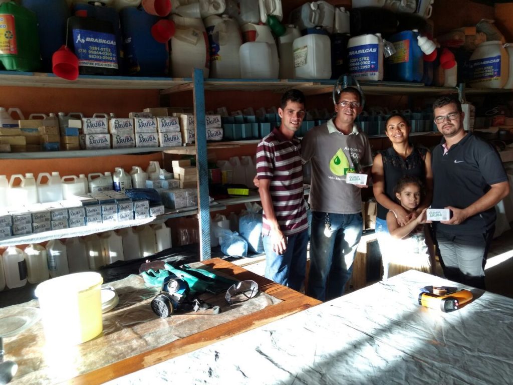 – Coleta do Óleo de cozinha usado do comércio que trabalha com fritura e das residências de Eunápolis com média de coleta de mil litros mensal sendo feitas em um carro emprestado que é utilizado uma vez por semana e diariamente por uma moto. Para ampliar a coleta é preciso de um carro a disposição do projeto diariamente. Uma parte do sabão que é produzido é destinado para instituições carentes.